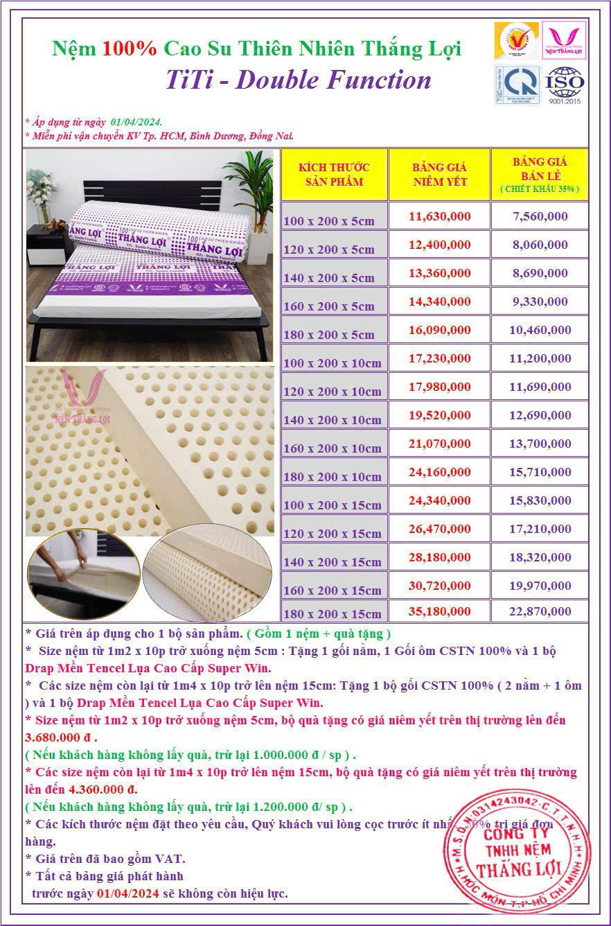 Bảng giá Nệm cao su thiên nhiên Thắng Lợi TiTi Double Function