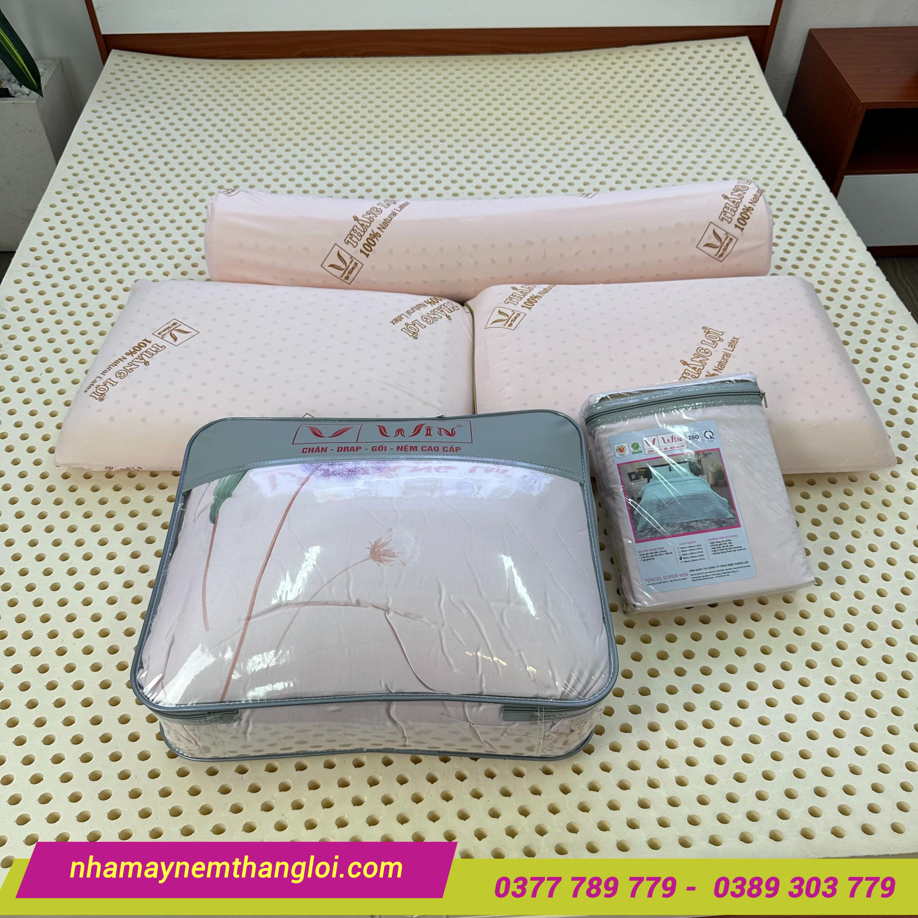 Các size Nệm còn lại từ 1,4 mét x 10p trở lên nệm 15cm: TẶNG 01 bộ gối CSTN 100% ( 2 nằm + 1 ôm ) và 01 bộ Drap Mền Tencel Lụa Cao Cấp Super Win
